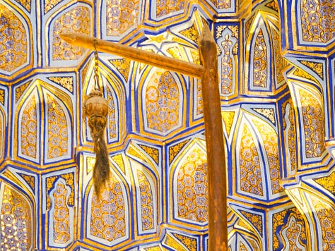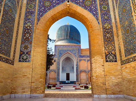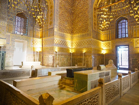 Sit with me alone at dawn in Samarkand, Uzbekistan, in the Gur-e-Amir, the dazzling final resting place of Timur the Conqueror, where we contemplate what it means to gaze at the splendor that venerates a man whose armies conquered much of the known world and slaughtered some 17 million fellow humans. Delve with me, if you dare, into The Curse of Timur, which, as it turns out, is partly truth, but mostly fiction.